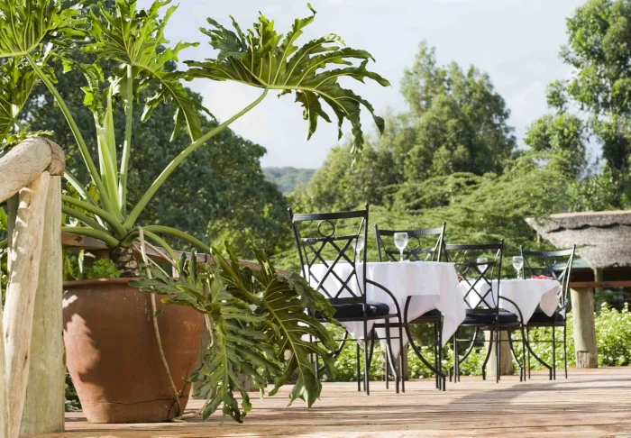 Fellesområdene byr på en trivelig restaurant med utsikt mot Kilimanjaro og et flott basseng med solsenger, der du kan ligge enten i solen eller skyggen mens du nyter utsikten mot Afrikas høyeste fjell. Maten i restauranten er økologisk, og nesten alle ingrediensene dyrkes i nærområdet.