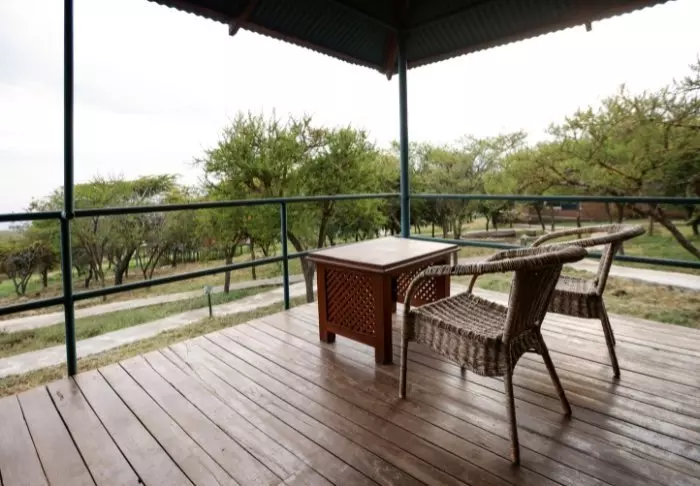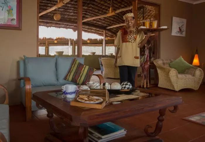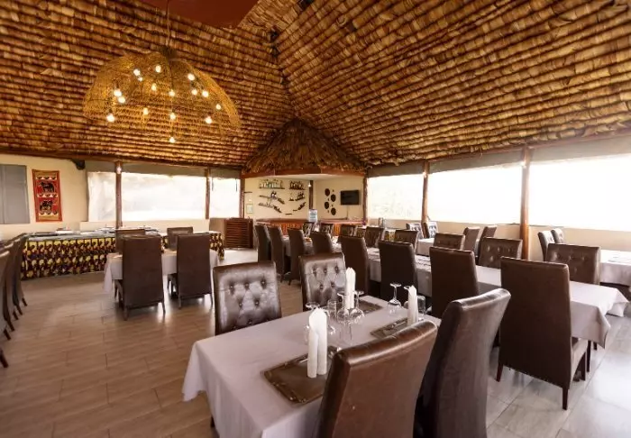 Fra restauranten er det fantastisk utsikt over området, som ligger på migrasjonsruten. I dette området lever det også store flokker av forskjellige antilopearter, bøfler, elefanter, flamingoer og andre fugler.