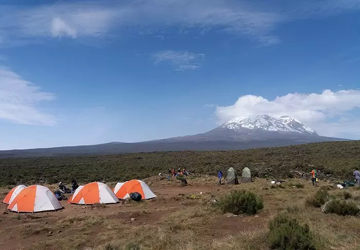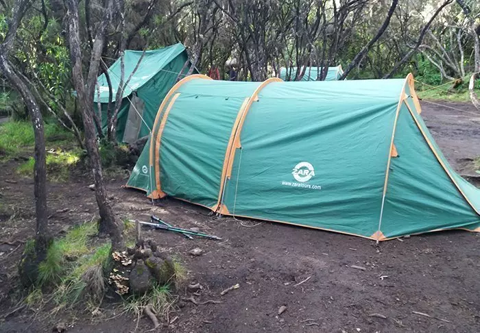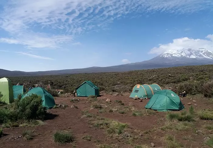 På vandreturen til toppen av Kilimanjaro overnatter du i telt i forskjellige leirer. Du sover på tynne liggeunderlag i tomannstelt.
