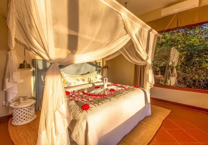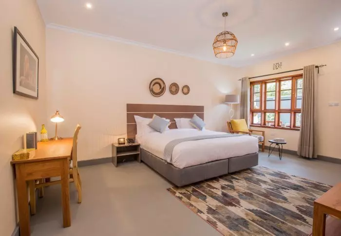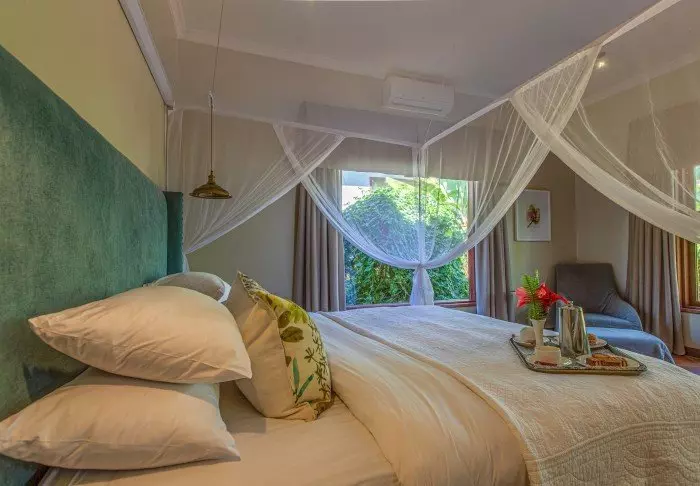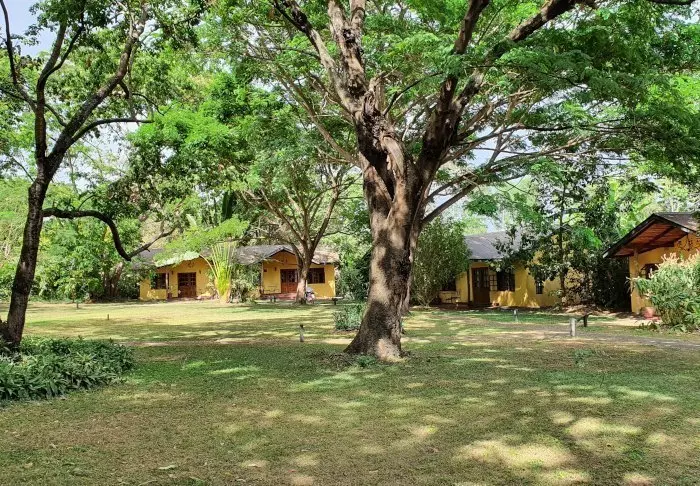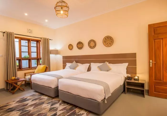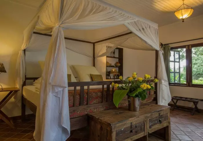 Dette er en liten, eksklusiv lodge med kun 24 hytter i sjarmerende kolonistil samt 12 rom i hovedbygningen med terrasse eller balkong som alle ligger ut mot hagen. Alle rom har bad med dusjkabinett og i tillegg takvifte, te/kaffe-brett og myggnett. Det er mulig å bestille room service.