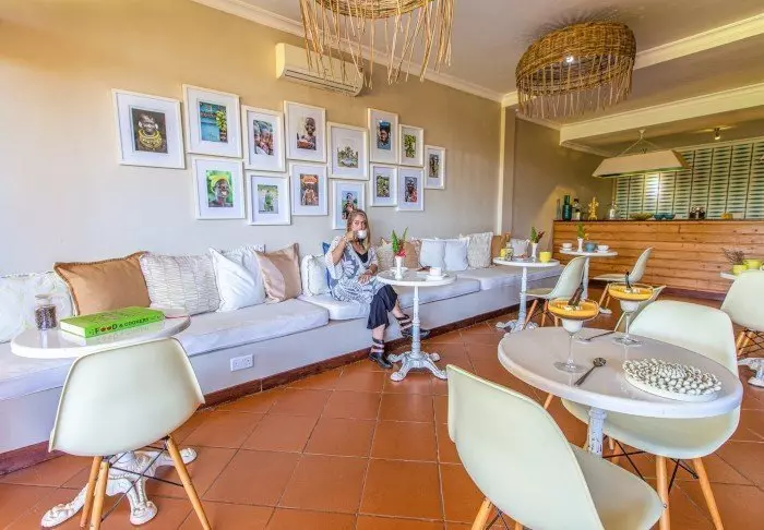 Den hyggelige dagligstuen frister til å tilbringe ettermiddagen med en god bok, og den overdekte terrassen er et perfekt sted å sitte med en kopp kaffe og kanskje bruke stedets meget gode Internett. I den lille hagen er det basseng med liggestoler, og på den ene siden av huset finner du den innholdsrike baren.