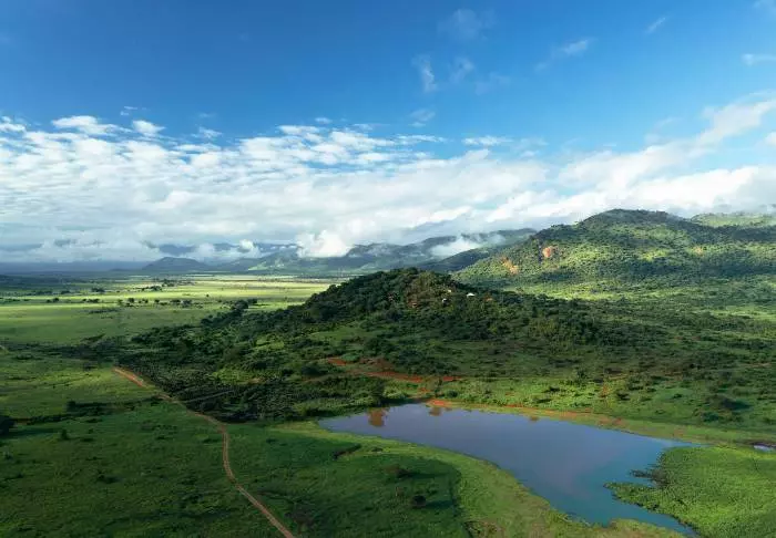 Mkomazi Wilderness Retreat ligger på en bakketopp med storslått utsikt over Mkomazi nasjonalparks eneste permanente vannhull.