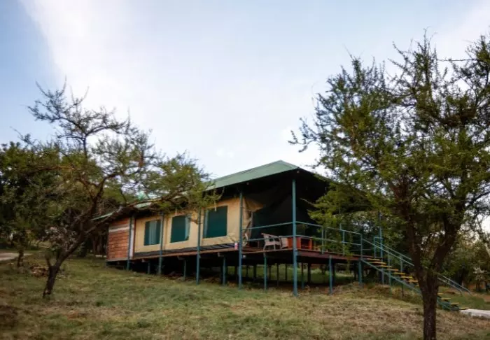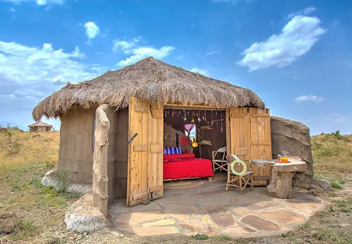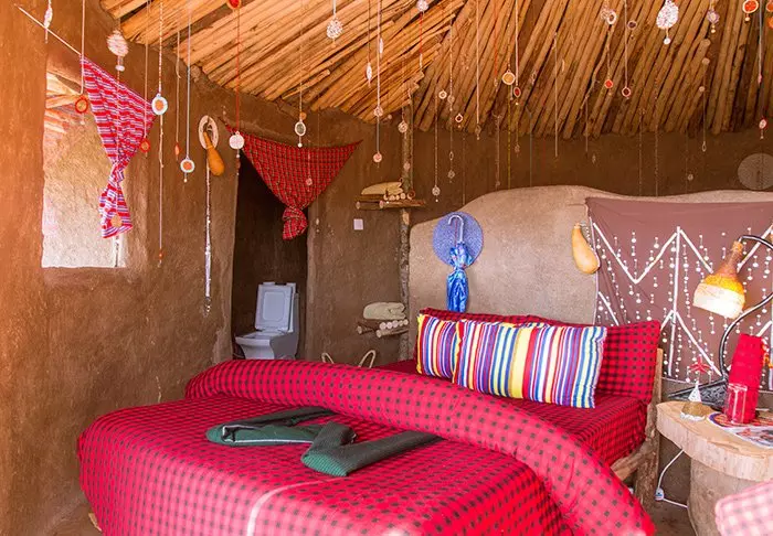 Her er det 11 hytter, som alle er bygd i tradisjonell masaistil – kun med ett unntak, at de har alle tenkelige nødvendigheter, som elektrisitet, toalett, rennende vann og varmtvannsdusj.