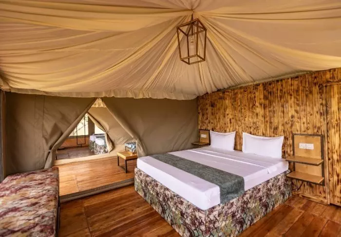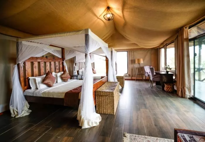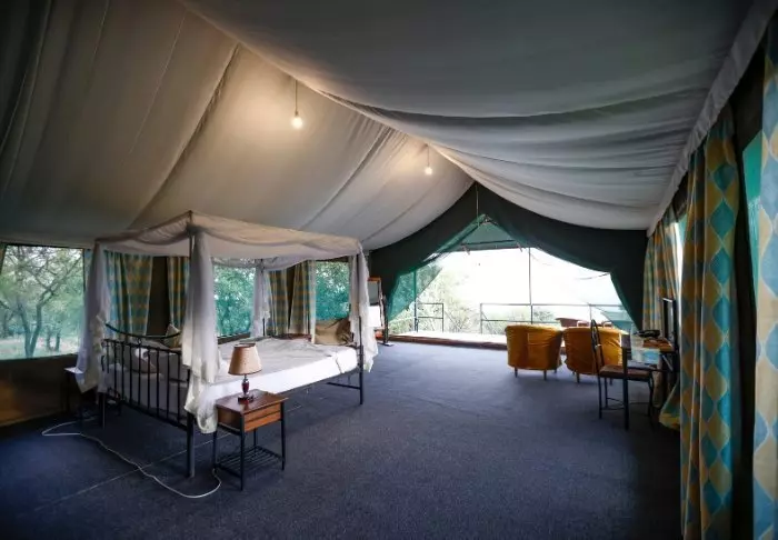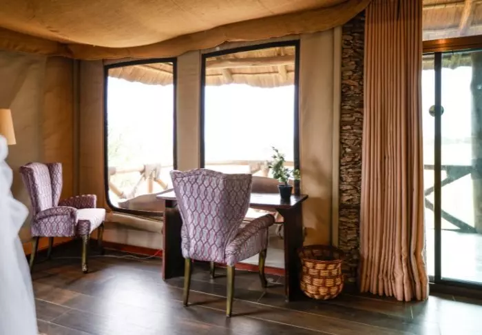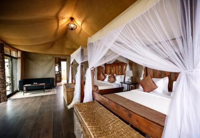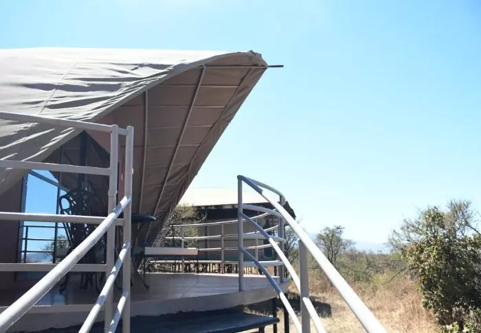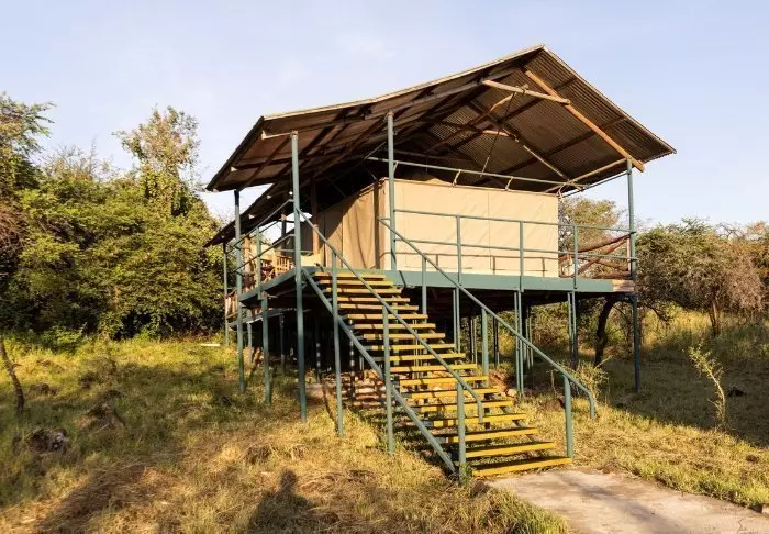 Lodgen består av 20 individuelle luksustelt som er bygget i en stilfull kombinasjon av kanvas og stein. Teltets sider er laget av kanvas, slik at du får oppleve ekte safaristemning med lydene og duftene fra naturen utenfor, taket er av strå og deler av veggene er bygget av stein. Teltene er nesten mer som rom enn som telt. Luksusteltene er bygget på steinpæler og svæver nærmest over jorden, noe som både gir god lufting en enestående utsikt.