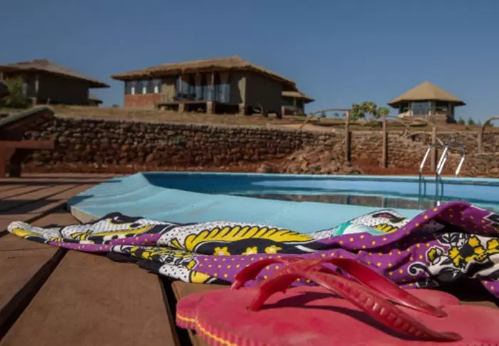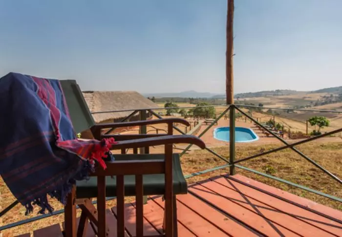 Nyt en kjølig dukkert i det lille bassenget etter avsluttet safari – og en drink ved leirbålet om kvelden. Gled deg til middagen: maten kommer fra markene rundt, og kaffen er naturligvis lokalprodusert!