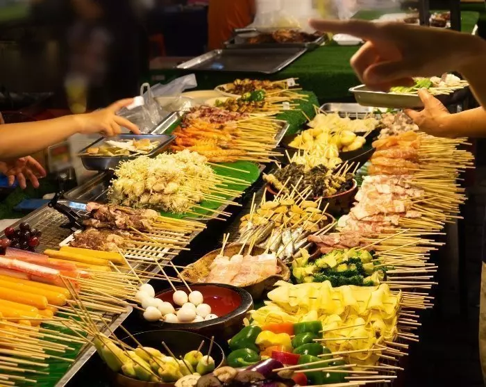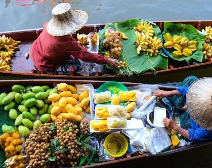 Neste stopp er et lokalt kveldsmarked, der du har tid til å gå rundt blant de mange bodene. Her blir du kjent med lokale delikatesser som for eksempel stekt svineknoke (khao kha mu), kokospudding og sticky rice med egg (bua loi khai waan).