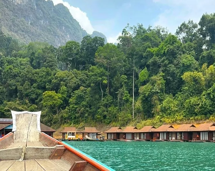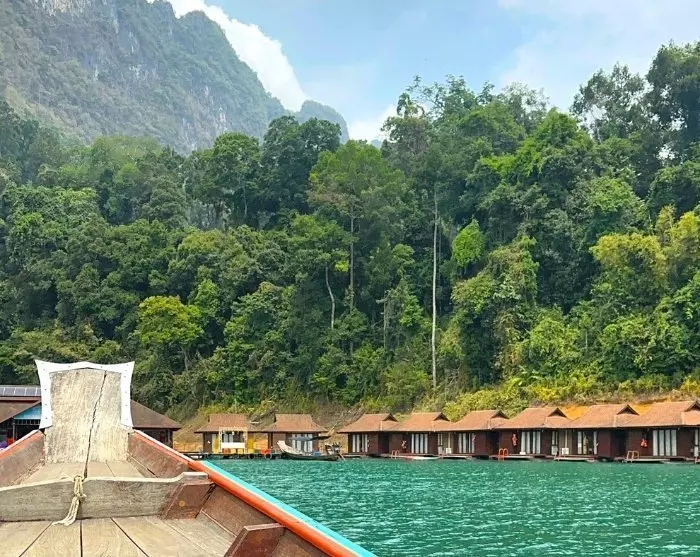 Deretter blir du kjørt til Ratchabrapa-bryggen nær den imponerende demningen. Her går du ombord i en longtail-båt og seiler ut på Cheow Lan-sjøen, der du kan beundre det majestetiske landskapet med ikoniske kalksteinsklipper.