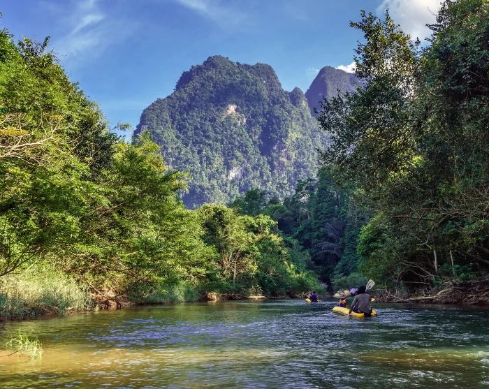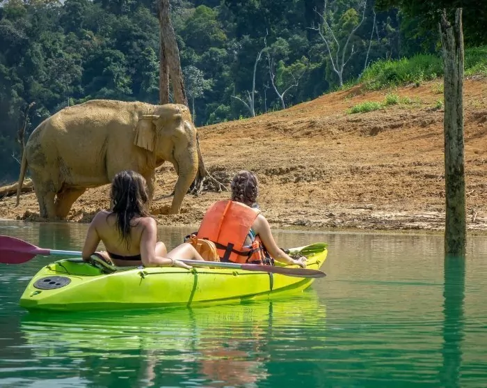 Kjøreturen fra Surat Thani flyplass til hotellet ditt tar omtrent 1 time og 40 minutter. Når du ankommer overnattingsstedet ditt, venter en rolig kanotur på Sok-elven. Det er en herlig opplevelse å gli fredelig av sted på elven, mens du tar til deg alle inntrykkene fra den omkringliggende regnskogen. Nyt synet av de dramatiske kalksteinsklippene og den frodige naturen. I tretoppene kan du høre fuglene synge, og tett ved elvebredden får du kanskje et glimt av en leguan. Det beste av alt er at du bare kan lene deg tilbake og nyte øyeblikket, mens din lokale guide padler for deg.