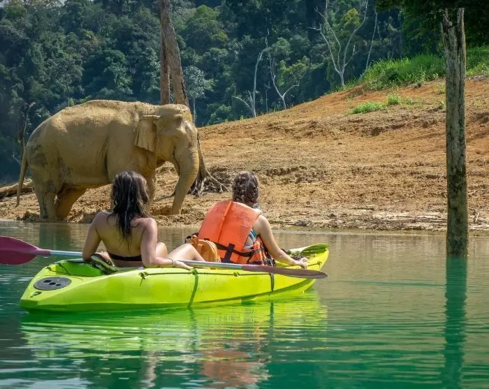Reisen fortsetter med et ekte jungeleventyr i Thailands vakreste nasjonalpark, Khao Sok. Den første natten tilbringes i den frodige jungelen nær Sok-elven, der fuglene kvitrer om kapp og apene svinger seg fra gren til gren i de høye tretoppene som nærmest vokser inn i himmelen. Den andre natten bor du på et flåtehotell midt ute på den magiske, smaragdgrønne innsjøen Cheow Lan, omgitt av bratte kalksteinsklipper som speiler seg i den speilblanke innsjøen. Her skal du blant annet på båtsafari, der du kan være så heldig å få øye på ville elefanter.