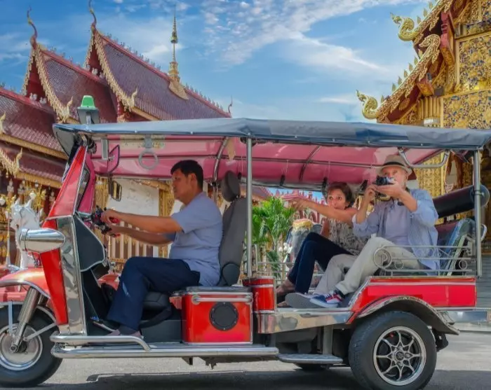 Når du skal rundt i Bangkok, trenger du ikke bekymre deg for den beryktede trafikken, for byen har et godt utvalg forskjellige transportmidler. Mange bruker tuk-tuk eller Grab. Elvetaxiene er også populære og utgjør en vesentlig del av den offentlige transporten, for de stopper ved mange av byens store severdigheter. Du kan også hoppe på Sky Train som snor seg mellom byens skyskrapere og er en god, rask og billig måte å komme seg rundt på.