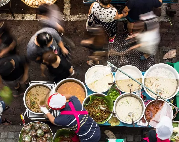 Matopplevelsene begynner på en populær Pad Thai-restaurant, som har klassifiseringen Bib Gourmand. Bib Gourmand er en utmerkelse fra Michelin-guiden til restauranter som tilbyr god mat til moderate priser. Her får du servert den smakfulle nasjonalretten på bananblader, og du kan også besøke kjøkkenet og se hvordan alt blir gjort.