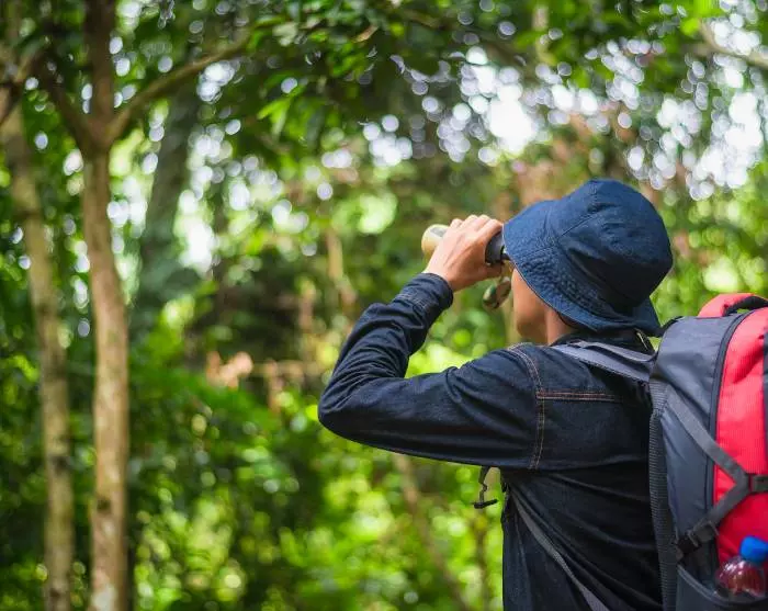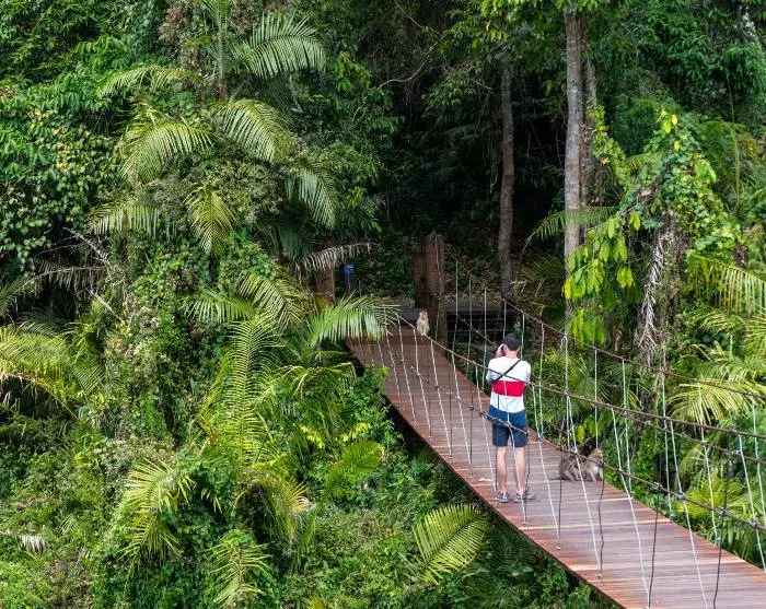 Så kjøres du inn i selve nasjonalparken, der du og guiden blir møtt av en erfaren ranger som kjenner parken som sin egen lomme. Alt er klart for en fottur langs en av parkens vakreste ruter. Turen er på mellom 1,2-2 km og varer mellom 45-60 minutter, avhengig av hvor rangeren velger å gå. Ruten er en av de korteste og enkleste i nasjonalparken, og passer for gjester i alle aldre. Stien snor seg gjennom regnskog og tørr skog til den lille fossen Kong Kaew, som ligger på slutten av stien. Underveis er det gode sjanser for å få øye på gibbonaper som svinger seg fra tre til tre. Hvis du liker fugler, er det bare å glede seg – i parken finnes det nemlig 440 forskjellige fuglearter, inkludert den største populasjonen av neshornfugl i hele Thailand.