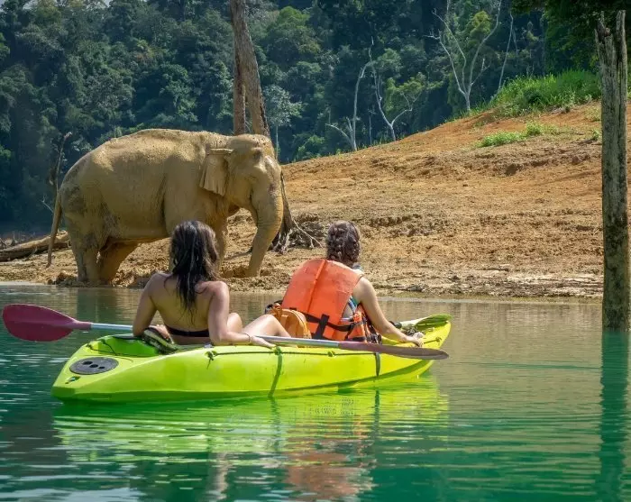 Det neste eventyret venter i Thailands vakreste nasjonalpark, Khao Sok. Den første natten tilbringer du i den frodige jungelen nær Sok-elven. Fuglene kvitrer om kapp, og apene svinger seg fra grein til grein i de høye tretoppene som ser ut som om de vokser opp i himmelen. Den neste natten bor du på et tømmerflåtehotell midt ute på den magiske og smaragdgrønne sjøen Cheow Lan, omgitt av bratte kalksteinsklipper som speiler seg i den blikkstille sjøen. Her skal du bl.a. på en båtsafari der du kan være så heldig å få øye på ville elefanter.