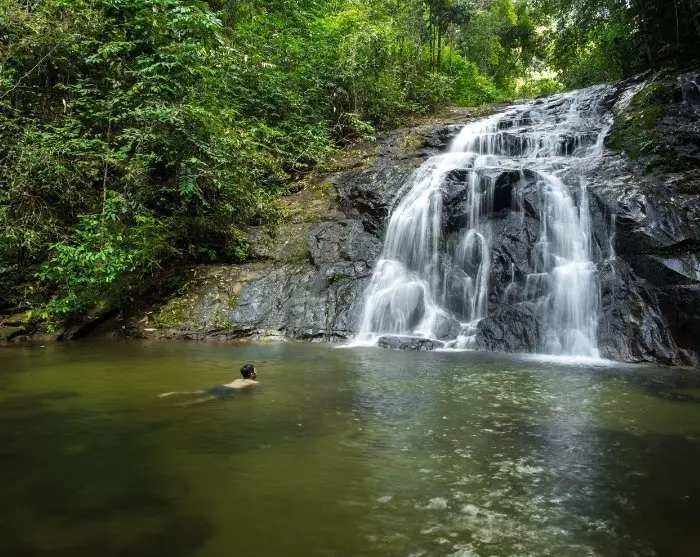 Deretter går turen til en av Koh Samuis maleriske fosser, Na Muang nr. 1, der du innhylles i disen fra den 18 meter høye, brusende fossen mens du får en deilig pause midt i naturen.
