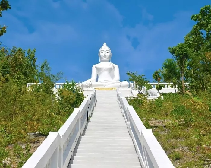 Fra Yun Lai-åsen fortsetter du til Wat Phra Mae Yen, også kjent som «den store Buddhaen», et ikonisk landemerke i Pai. Den imponerende Buddha-statuen ruver majestetisk over Pai-dalen og er synlig på lang avstand. For å komme deg til statuen må du klatre opp en trapp med 350 trinn, men du blir belønnet med fantastisk utsikt over dalen og de omkringliggende fjellene.