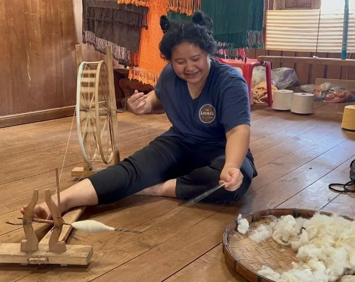 Ved ankomst til Ban Huay Hom besøker du en lokal familie som driver en koselig kafé og et gårdsbruk, i tillegg til at de jobber med tradisjonell veving. Besøket starter i familiens kafé, hvor du kan smake på egenprodusert kaffe og kjøpe ulike kaffeprodukter. Du får god tid på deg til å stille spørsmål og lære mer om Karen-folket, deres språk, kultur og tradisjoner samt hvor viktig Mae La Noi Royal Project er for familien. Deretter blir det et besøk på familiens veveverksted, der tepper, duker, tradisjonelle kostymer og mye mer blir vevet. Du får en demonstrasjon av vevingen, og hvis du vil, kan du prøve deg på den tradisjonelle veveteknikken selv. Til slutt blir det en rundtur på familiens store tomt, der du får se sauene, rismarkene og kaffeplantasjen deres. Vær oppmerksom på at hvis familien forhindres fra å stille på grunn av sykdom eller lignende, vil du i stedet bli ønsket velkommen av en annen familie i landsbyen som tilbyr en lignende opplevelse.