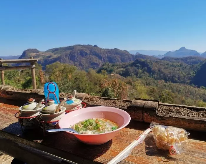 Underveis blir det et stopp i fjellandsbyen Ban Cha Bo, der Lahu-folkeslaget bor. Landsbyen er kjent for sin autentiske kultur og fantastiske natur. Lunsj (ikke inkludert) spises på en lokal restaurant, der måltidet inntas på en balkong som strekker seg ut over fjellsidene, mens du beundrer den fantastiske utsikten over de omkringliggende fjellene og dalførene.