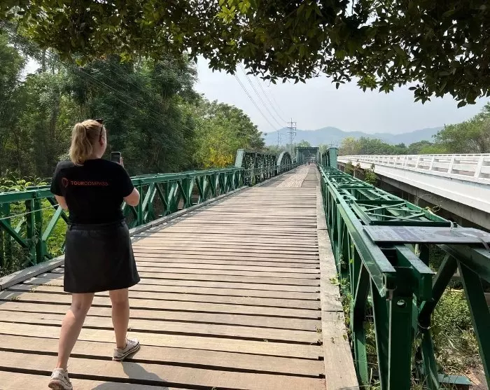 Turen fortsetter til den historiske Ta-Pai-broen nær Pai. Broen ble bygget i 1942 av japanske tropper under andre verdenskrig som en del av deres forsyningsrute. Etter krigen ble den opprinnelige broen ødelagt, men den ble senere gjenoppbygd, og står nå her som et viktig landemerke og symbol på regionens historie.