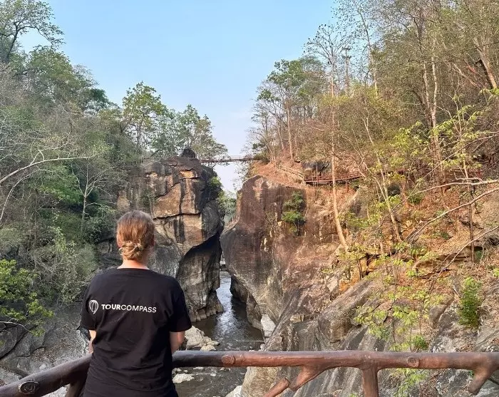 Turen fortsetter deretter til Ob Luang nasjonalpark, som er kjent for sitt dramatiske landskap. Her får du oppleve den smale og dype kløften Ob Luang, hvor Mae Chaem-elven passerer gjennom bratte klipper. Kløften kalles også “The Kissing Cliff”, ettersom det kan se ut som to ansikter som kysser. Over tid har den kraftige vannstrømmen formet denne spektakulære kløften, som er omgitt av frodig skog og fjell. Ob Luang nasjonalpark har også flere arkeologiske funnsteder og hulemalerier som anslås å være over 3000 år gamle.