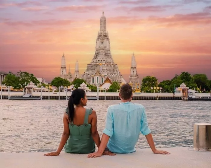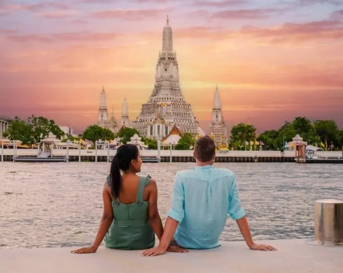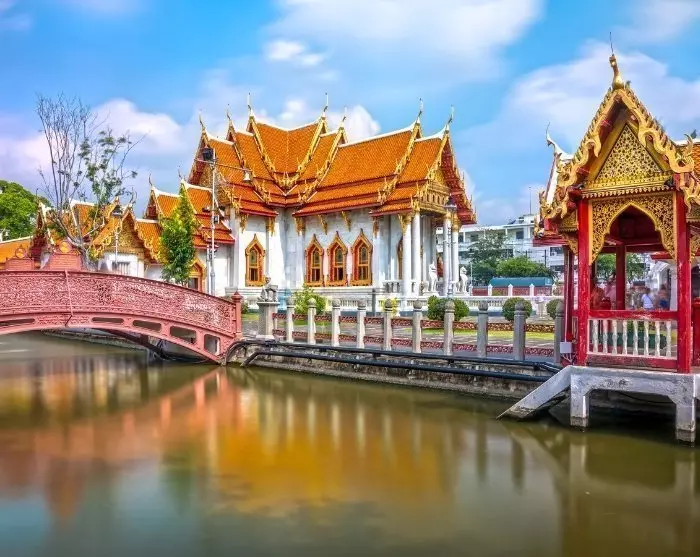 Du ankommer til Thailands pulserende hovedstad, Bangkok. Etter passkontroll og bagasjeutlevering møter du guiden din i ankomsthallen ved dør B, gate 6. Guiden har på seg TourCompass-uniform og holder et skilt fra TourCompass, så det er lett å finne ham eller henne. Derfra blir du kjørt til hotellet ditt i det sentrale Bangkok, og allerede underveis får du en følelse av byens imponerende størrelse og livlige atmosfære.