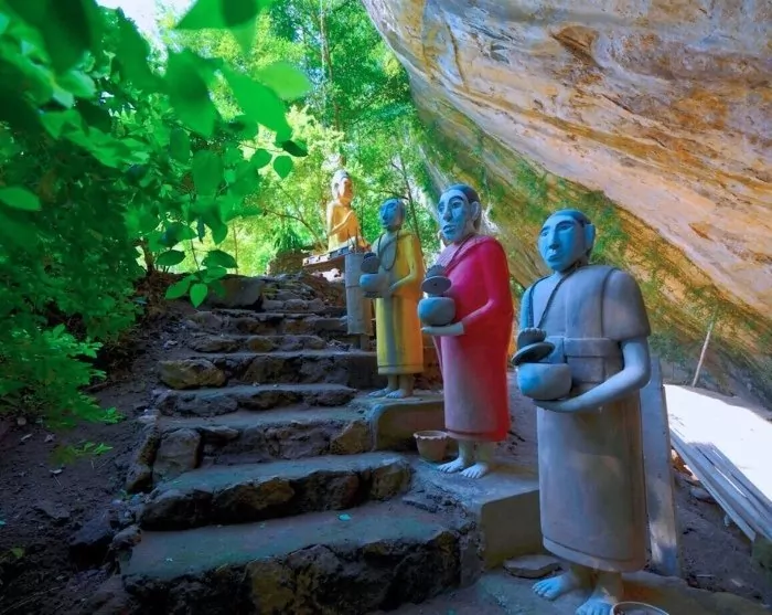 Du besøker en nærliggende mon-landsby, der mon-folket har bodd i mange generasjoner. Her får du se Golden Rock, Buddha Image Cave og landsbyskolen. Du får mulighet til å møte lokalbefolkningen og høre om deres historie, kultur og tradisjoner. Deretter blir det en kort tur til fots langs elvebredden til et flott utsiktspunkt der du kan nyte utsikten over elven Kwai og det frodige landskapet rundt den.