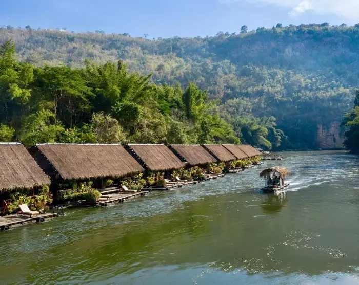 Fra Bangkok legger du ut på en reise gjennom historien, til det vakre området ved Kanchanaburi og elven Kwai, omgitt av frodig jungel. Her får du et interessant innblikk i landets dramatiske historie under den 2. verdenskrig. På denne reisen har vi skiftet ut vanlige hoteller med luksustelt og flotell midt i den frodige, grønne naturen.