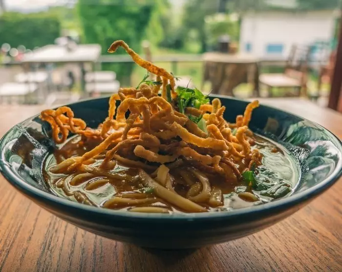 Fra sykkelsetet opplever du Chiang Mais sjarm og vakre templer. Du får også smake på den lokale spesialiteten, Khao Soi, en krydret pastarett med grønnsaker og kjøtt.