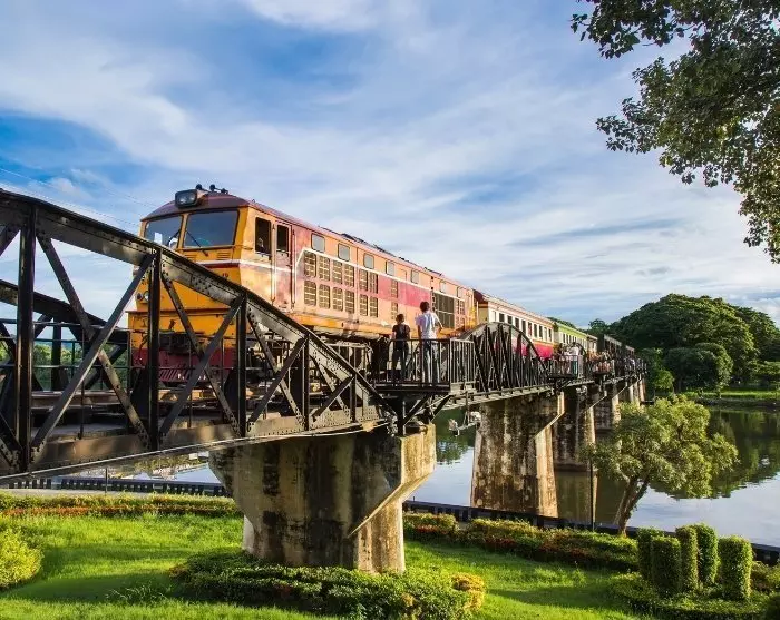 Du hentes på hotellet tidlig for å unngå den verste morgentrafikken ut av Bangkok, og blir kjørt direkte til Kanchanaburi og elven Kwae Yai. Under andre verdenskrig ble det bygget en jernbane her fra Thailand til Myanmar under umenneskelige forhold. Det tok 18 måneder å bygge den 415 km lange jernbanelinjen, og i løpet av denne perioden (1942-1943) døde ca. 100 000 asiater på tvangsarbeid og 12 500 allierte krigsfanger. Denne historien fra virkeligheten ble senere skildret i den berømte romanen Broen over elven Kwai av Pierre Boulle, og udødeliggjort i en filmatisering av boken.