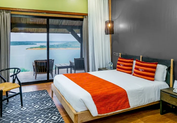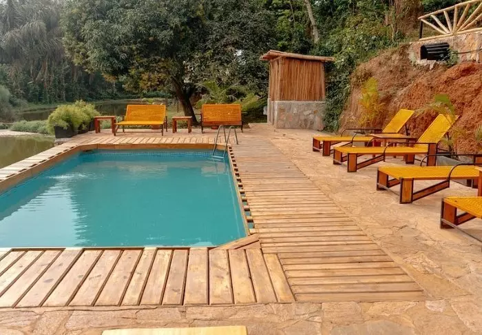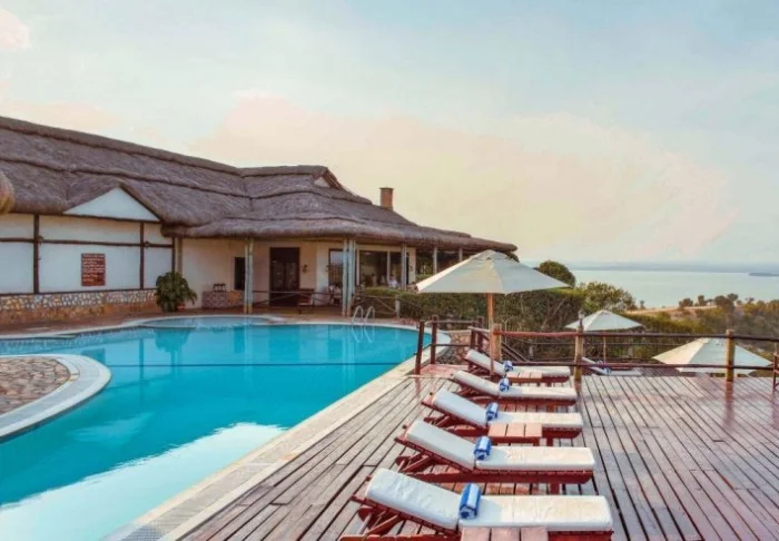Lodgens terrasse og svømmebasseng tilbyr enestående avslapning med imponerende utsikt over Kazinga Channel. Her kan du la roen senke seg og nyte den stille skjønnheten mens du reflekterer over dagens mange eventyr.