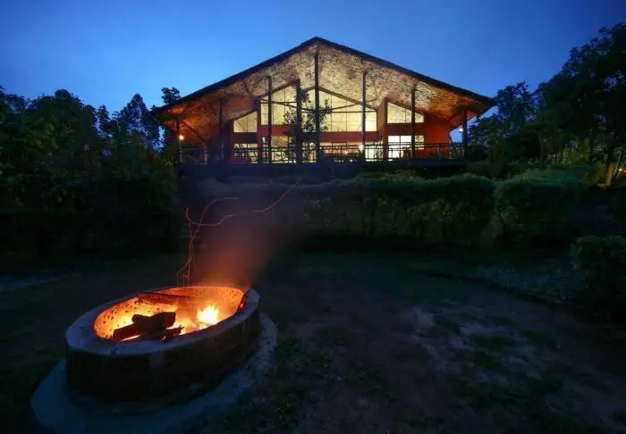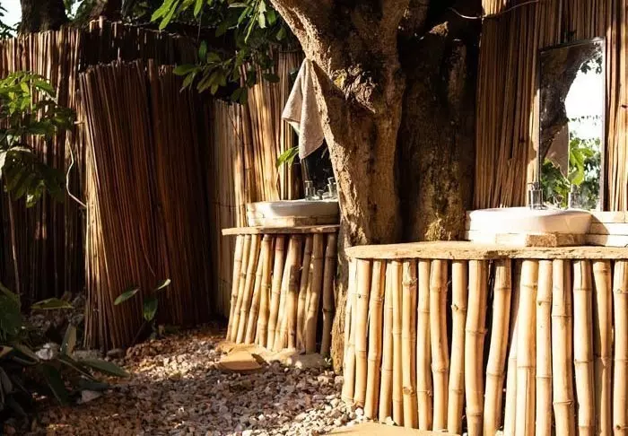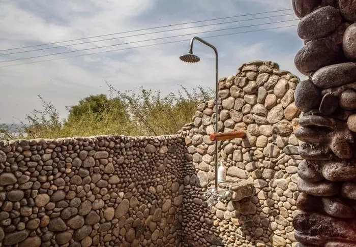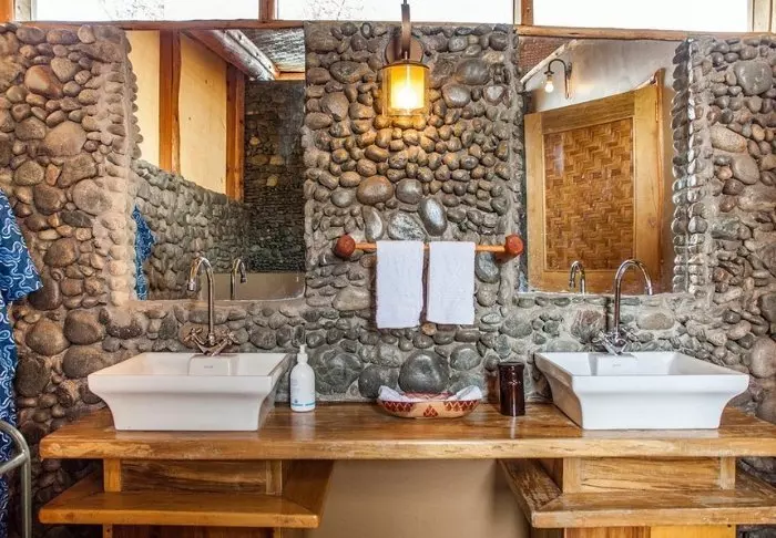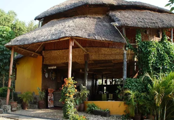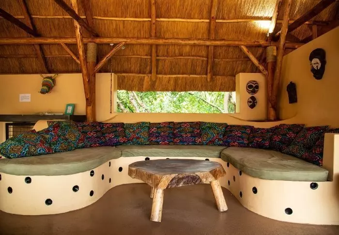 Selve lodgen er bygget av lokale håndverkere, og de har kun brukt lokale materialer som passer godt inn i omgivelsene. Dessuten er de fleste møblene og dekorasjonene håndlaget av lokalbefolkningen.