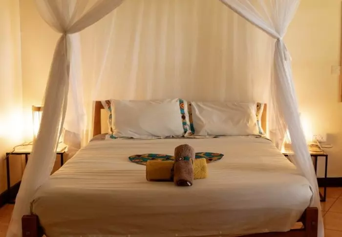 Både barn og voksne vil føle seg hjemme her. Her er det rom av ulike størrelser, men felles for dem alle er at de har eget bad og toalett, myggnett over sengene samt Wi-Fi. Noen av rommene har egen veranda.