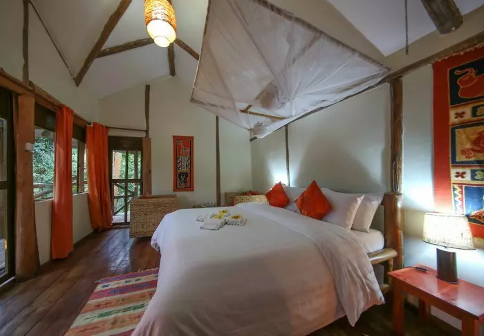 Lodgen består av 16 romslige hytter, og her er det perfekt å slappe av etter en spennende dag med gorilla-tracking. Alle hytter har eget bad og privat balkong med en fantastisk utsikt over den uberørte tropiske regnskogen.