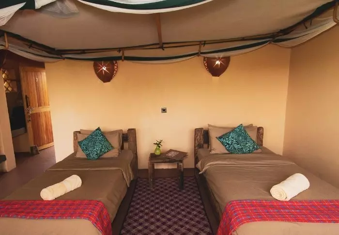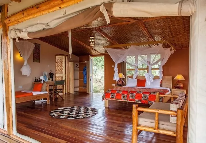 Lodgen byr på en kombinasjon av komfort og autentiske safariopplevelser. De elegante rommene er smakfullt innredet i en østafrikansk stil og tilbyr moderne bekvemmeligheter som aircondition, kaffefasiliteter og private bad.