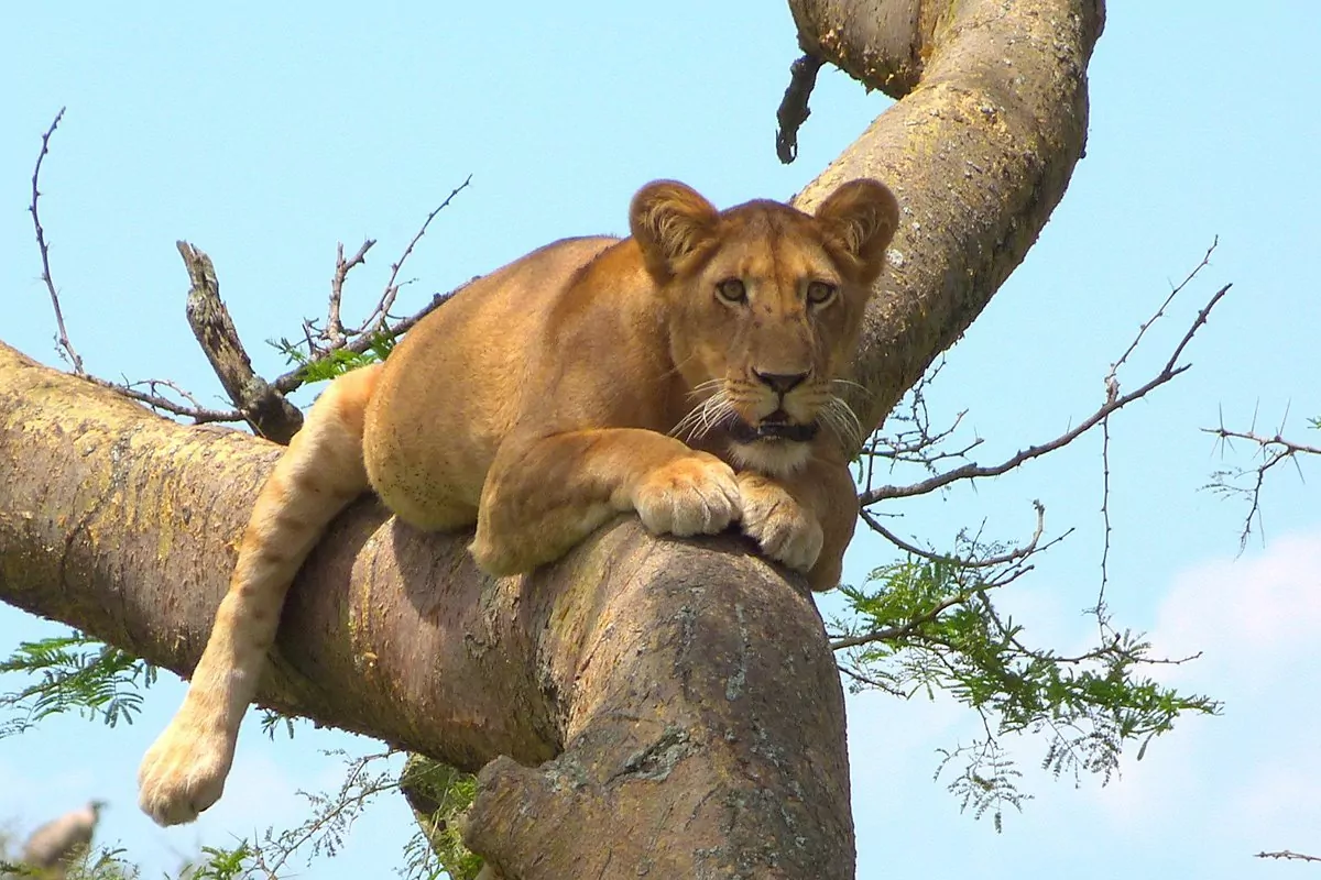 Om ettermiddagen går turen sørover mot Ishasha, kjent for sine treklatrende løver. Enten i ettermiddag eller i morgen formiddag blir det en game drive der du blant annet drar ut på utkikk etter de treklatrende løvene. Som regel klatrer de opp i trærne for å komme seg vekk fra fluer og for å søke skygge fra den stekende solen. Det er ganske uvanlig for løver å klatre i trær, men man kan se denne atferden i enkelte nasjonalparker i Tanzania og i Uganda.