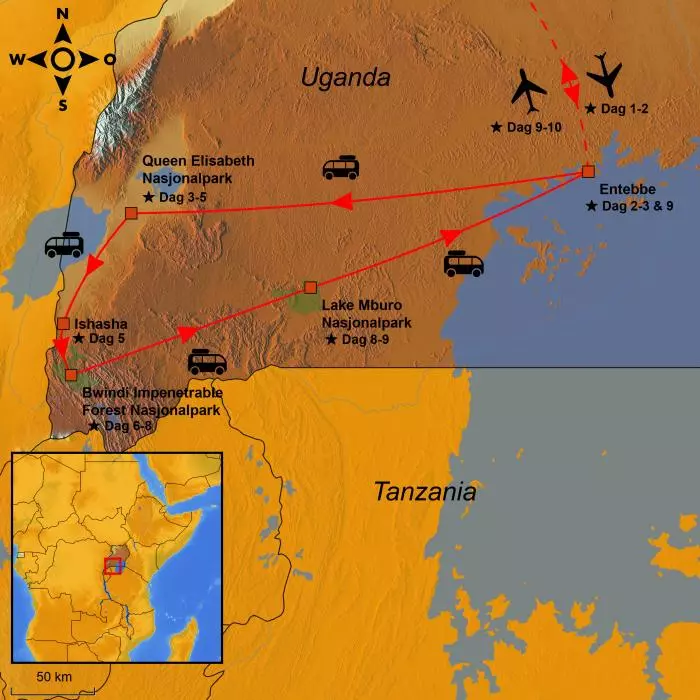 • 7 netter i Uganda inkl. frokost dag 2 og helpensjon dag 3-9