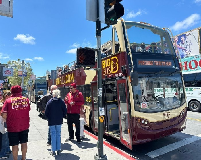 Utforsk sjarmerende San Francisco og få mest mulig ut av tiden du har til rådighet med en tur på de berømte Hop-On, Hop-Off bussene, som tar deg til 16 av de mest populære severdighetene i byen. Du aktiverer billetten ved startpunktet på 99 Jefferson Street, og bussen går fra midt på morgenen til sent på ettermiddagen. Når du har aktivert billetten, kan du gå av og på så bussene så ofte du vil i 24 timer fra aktiveringstidspunktet.