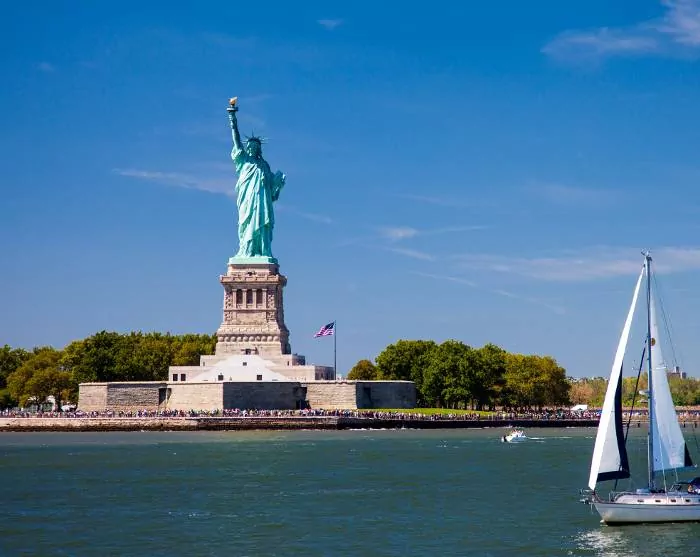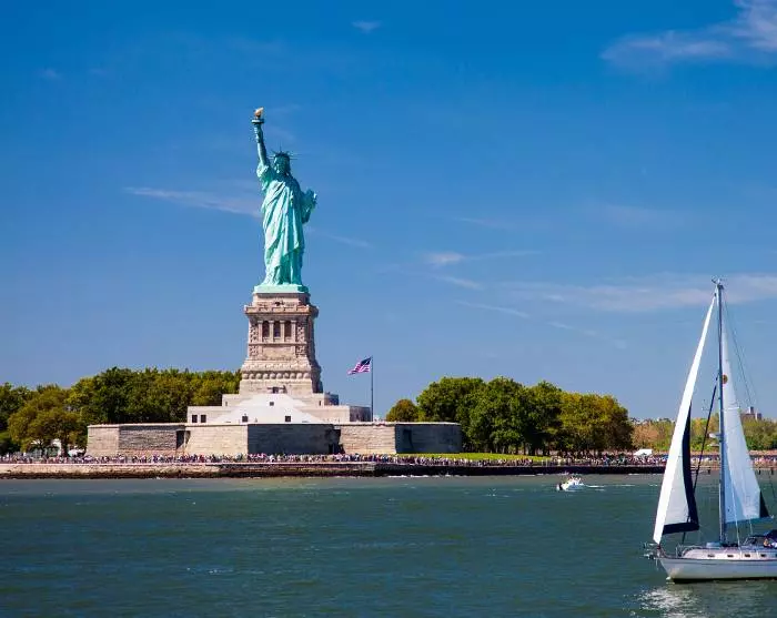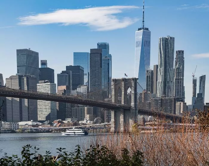 Et sted i horisonten dukker etter hvert et av Amerikas mest ikoniske landemerker opp – Frihetsgudinnen. Statuen ble donert av Frankrike til USA i 1885 til ære for de to landenes allianse under den amerikanske revolusjonen, og for å anerkjenne Amerika som et frihetens land. Senere ble hun et symbol på frihet og håp for de nye reisende som ankom fra sjøveien. Fra Frihetsgudinnen fortsetter båtturen forbi One World Trade Center og under historiske Brooklyn Bridge og Manhattan Bridge, med fantastisk utsikt over New York skyline. Det er først når du ser skyskraperne på avstand, at du virkelig skjønner hvor enorme de er. Turen avsluttes der den startet, og nå som du har blitt mer kjent med byen, er det kanskje steder du vil se nærmere på til fots. Det er opp til deg – resten av dagen står fritt til din egen disposisjon.