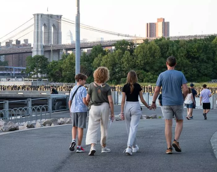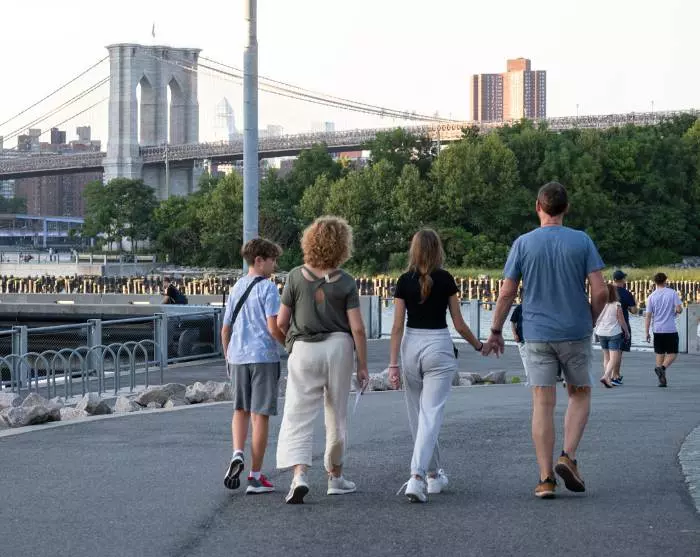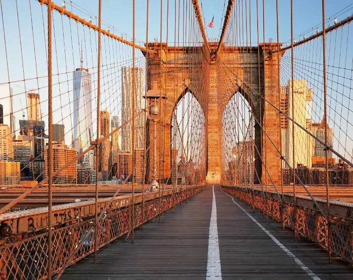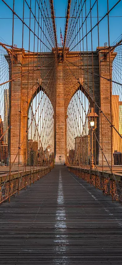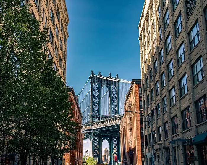 Vi anbefaler sterkt å spasere eller sykle over Brooklyn via den berømte «kjærlighetsbroen», Brooklyn Bridge, og eventuelt tilbake via Manhattan Bridge – en flott tur. På Brooklyn-siden kan du nyte en forfriskning med utsikt over byen fra DUMBO-området, som ligger mellom de to broene.