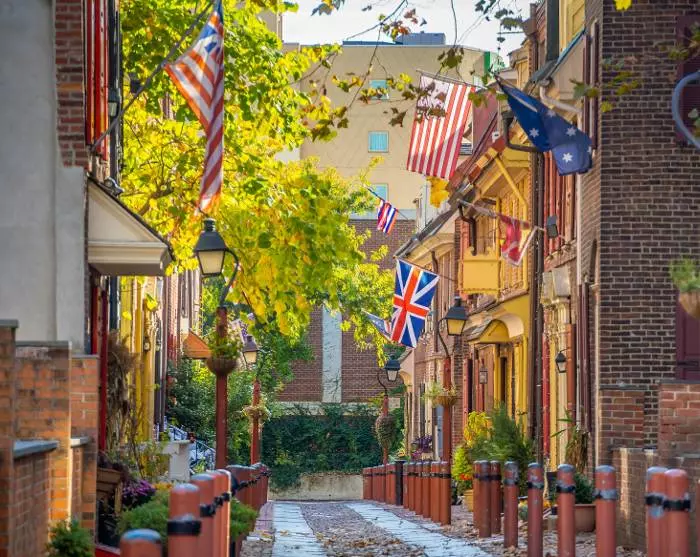Det sies at det amerikanske flagget ble unnfanget her i Philadelphia. I Betsy Ross House kan du høre historien om Betsy, som sydde det første amerikanske flagget som senere ble presentert for den første presidenten i USA – George Washington.