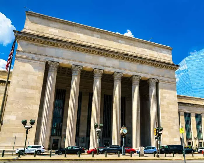 Ta en Uber eller taxi til Union Station i DC, som ligger bare noen få kilometer fra hotellet. *Sørg for å være der i god tid før avgang – fra Washington D.C. senest 30 minutter før (du finner informasjon om oppmøtested og -tid på voucheren). Togturen til Philadelphia tar litt under to timer, så len deg tilbake i setet og se naturen suse forbi.