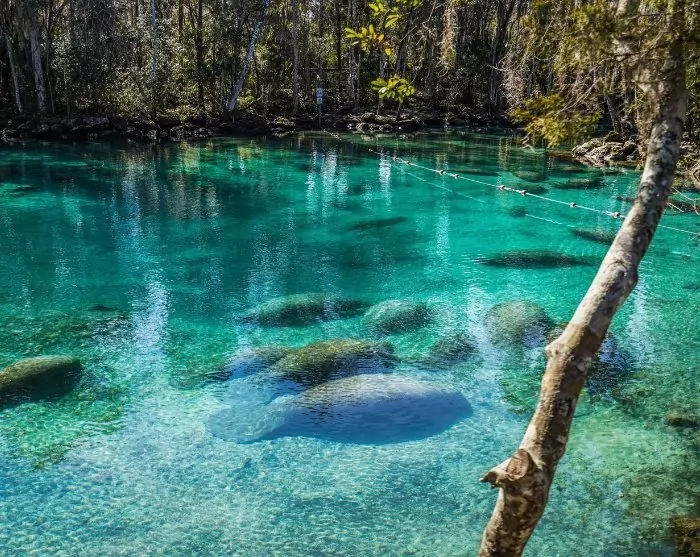 Hvis du er klar for litt eventyr, kan du kjøre via Crystal River, som er kjent for sine mange manater – eller sjøkyr – som særlig i den kjøligere årstiden finner veien til viltreservatet Three Sisters Springs. De trege, men kjempestore skapningene kan observeres flere steder i Florida, men her i Three Sisters Springs finner du ofte den største konsentrasjonen via det 3 km lange stisystemet.