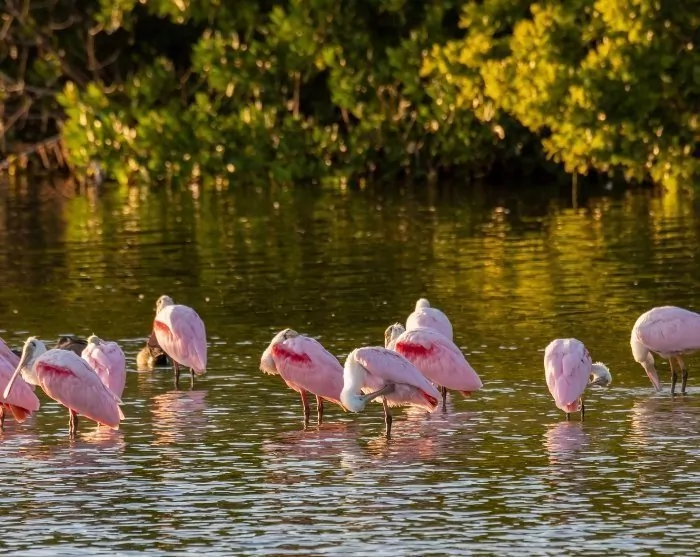 På Sanibel kan du padle kajakk i Tarpon Bay, leie sykler og utforske de små buktene. Du kan også finne spesielle skjell på Bowman’s Beach (men husk at du ikke kan ta skjellene med deg). På Sanibel finner du også det berømte viltreservatet J.N. “Ding” Darling National Wildlife Refuge, et av de største mangrove-økosystemene i USA. Reservatet har mer enn 245 forskjellige fuglearter, inkludert den vakre rosa skjestorken, som tiltrekker seg mange fugleentusiaster hvert år.