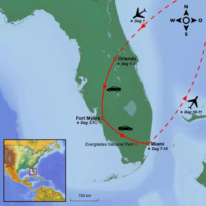 I dag skal du reise til den sørligste staten i fastlands-USA, nemlig Florida. Du flyr fra din valgte flyplass til Orlando, som ligger sentralt i den nordlige delen av Florida.