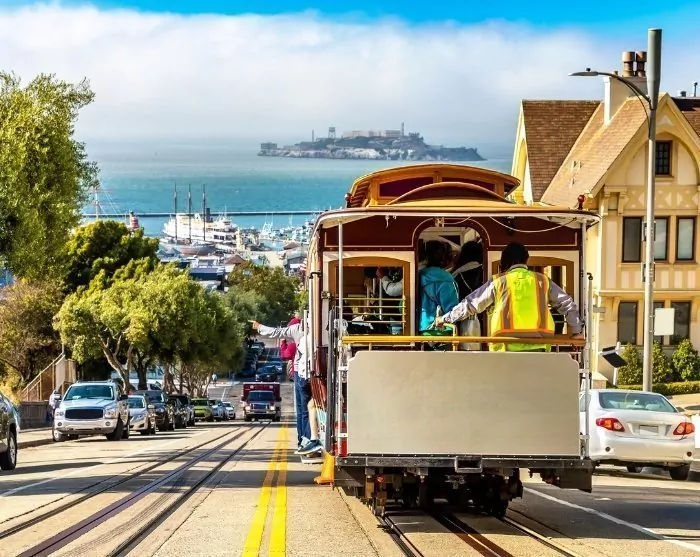 Du våkner sannsynligvis tidlig i denne delen av verden, klar til å utforske de svingete og bratte gatene i San Francisco. Du bor veldig sentralt, med kort vei til shoppingsteder, kafeer og ikke minst de berømte sporvognene som har transportert folk opp og ned bakkene her siden 1878. Du kan kjøpe enten en enkeltbillett eller en heldagsbillett på endestasjonene, og med den berømte Hyde-Powell-linjen kommer du enkelt fra Union Square til det berømte området Fisherman’s Wharf. Hvis du vil reise med sporvogn i ekte San Fran-stil, bør du se om du kan få ståplass på siden av vognen og føle sommerfuglene i magen når farten går opp i nedoverbakkene.