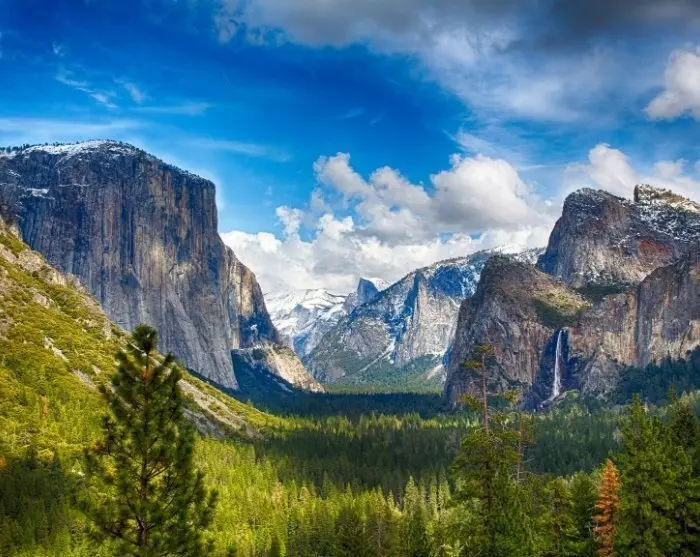 Du bør også vurdere å ta bilen til et av de vakreste utsiktspunktene i parken, Tunnel View, med storslått utsikt over Yosemite Valley, Bridalveil Fall og de berømte fjellene El Capitan og Half Dome.
