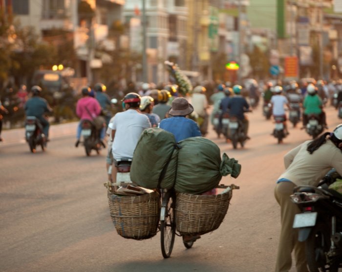 Når solen har gått ned om kvelden, våkner Ho Chi Minh-byen for alvor. Millioner av mennesker hopper opp på scooterne sine og kjører inn til byen for å spise middag og møte venner.