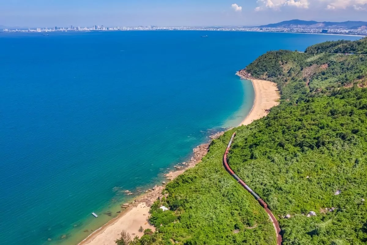 Du våkner til en vakker utsikt når toget kjører langs kysten. Her kan du kikke ut på de grønne fjellene og det glitrende blå havet.