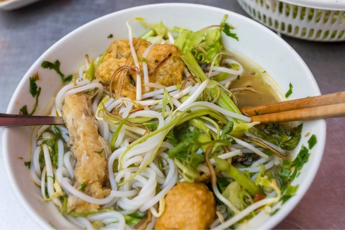 Før sightseeingturen fortsetter blir det lunsjpause, og du får servert en lett lunsj som består av pho (vietnamesisk nudelsuppe) eller bun cha (vietnamesiske kjøttboller med nudler).