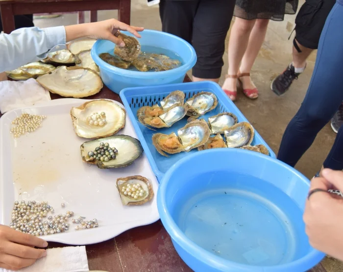 Senere legger båten til ved en lokal perlefarm, hvor du får innblikk i tradisjonell perledyrking. Her har du også mulighet til å hoppe i en kajakk og padle rolig gjennom det vakre naturlandskapet.
