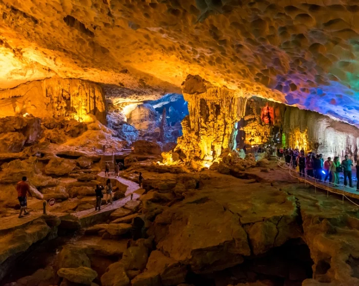 Turen fortsetter til Sung Sot-grotten, Ha Long-buktens største og mest imponerende dryppsteinsgrotte. Her venter et fortryllende indre landskap av stalaktitter og stalagmitter, formet gjennom millioner av år. Vi anbefaler gode, lukkede sko, spesielt i vått vær.